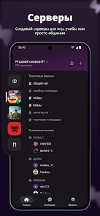 The application allows users to see who is online, their current activities, and which chat they are participating in, promoting engagement. Customization options such as roles, statuses, emojis, and channel organization are accessible without complexity. Additionally, it supports shared activities like videos, music, and mini-games within chats, catering to various interests. Флудилка: Общайся Играй is compatible with phones, tablets, and computers, ensuring synchronization across devices.